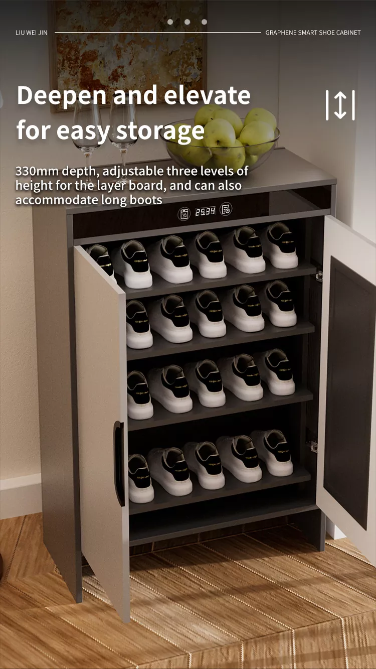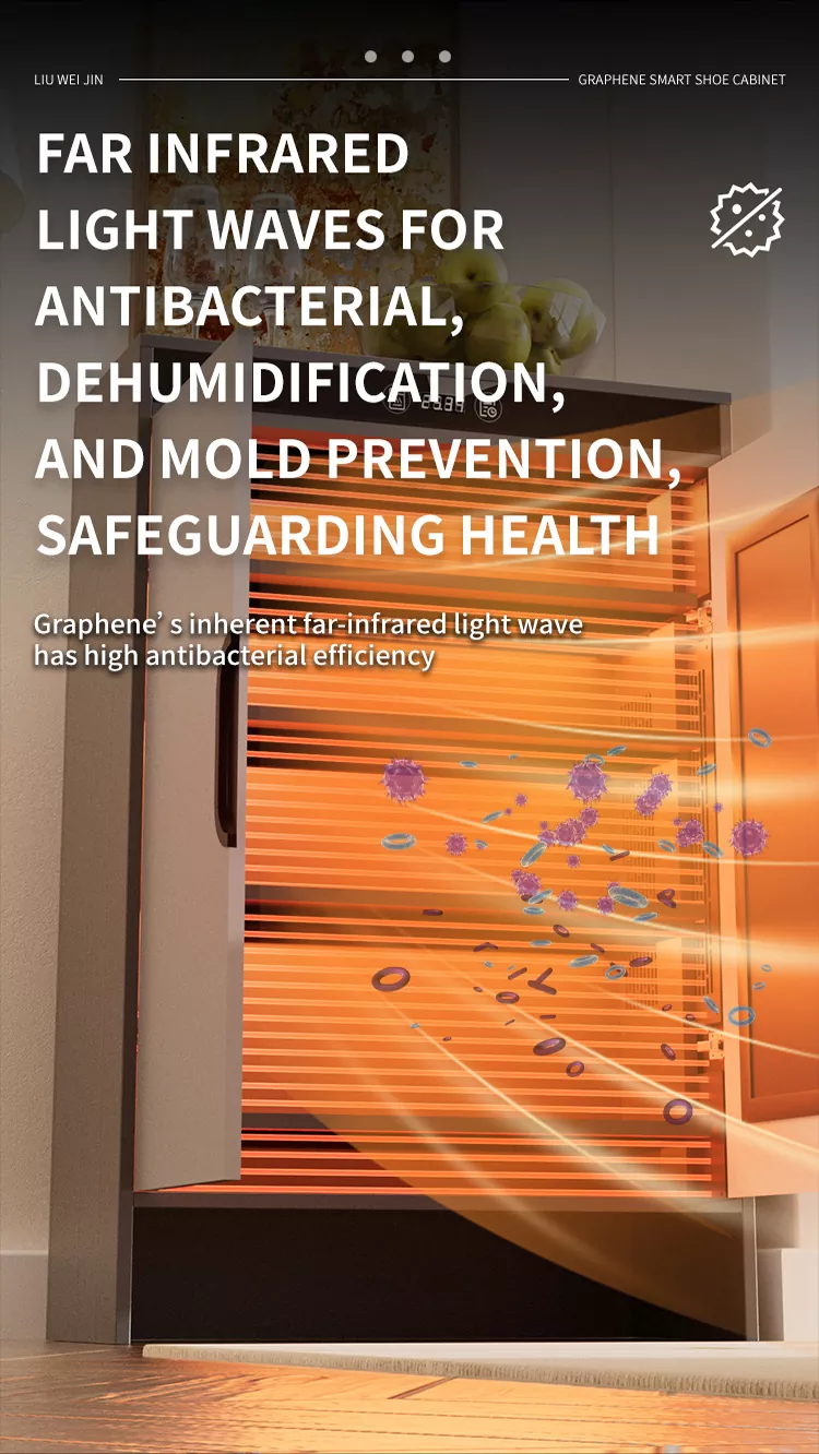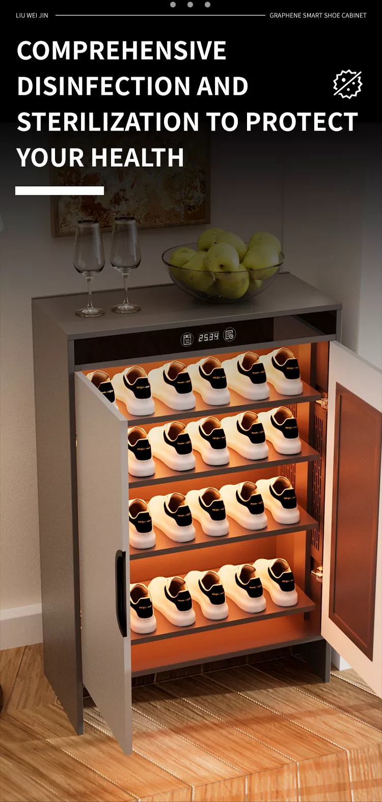Det senaste grafenelektriska värmningstorkningstorkskåpet utvecklat av Liuweijin ger gratis ersättning och ett års fjärrgarantitjänst. deodorize. Skoskåpet har ett fritt justerbart lagringsutrymme, varje skikt av hyllan kan tas ner separat, och skåpet har en flytande kristallskärm. Det kan slutföra driften av temperaturdisplay och intelligent timing. Torka dina skor, motstå bakterier och deodorisera och skydda fötternas hälsa.